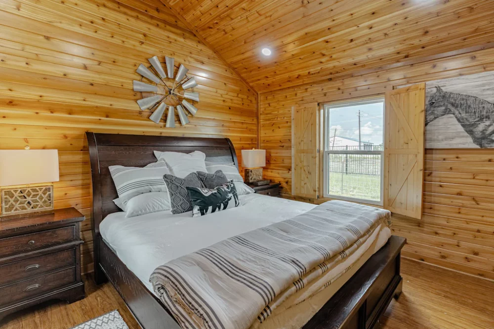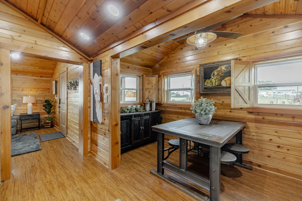 Stay at a fully furnished, 2-bedroom cabin on historical Boyd Farm! We are located approximately 30 minutes from Dallas, close to downtown Rockwall, and just up the street from Lake Lavon. Five total cabins are available on the property to rent.